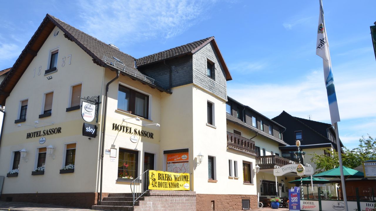 Hotel Sassor is een motorvriendelijk hotel in het mooie ‘Ederberger Land’. De uitbaters Ulli en Axel Sassor zijn ook fervente motorrijders. Men beschikt over een afsluitbare garage voor de motoren alsook droogruimtes voor motorkleding.